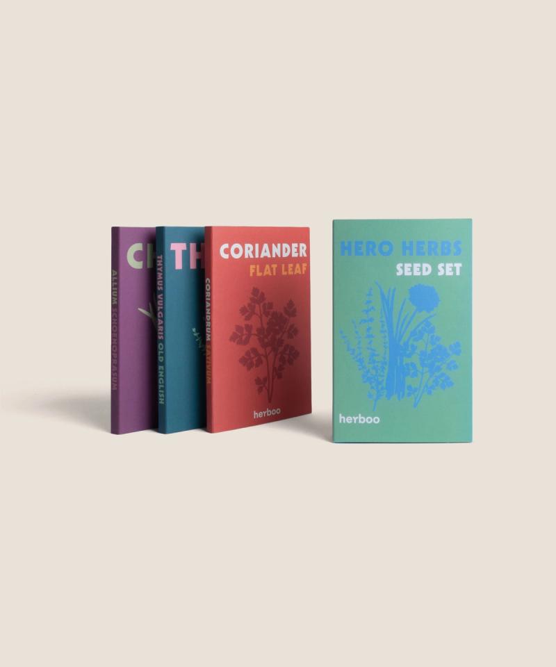 This herb seed set includes three easy-to-grow kitchen herbs — thyme, chives and coriander — selected for growing from seed at home. Designed for windowsills, pots and small garden spaces, the Hero Herbs Seed Set is ideal for anyone starting a herb garden from seed.