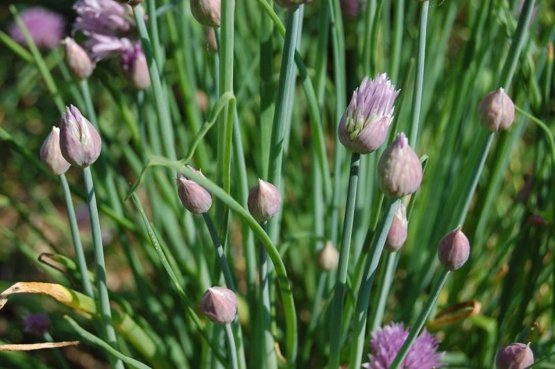 Thyme (Thymus vulgaris), Chives (Allium schoenoprasum), and Coriander (Coriandrum sativum) — classic kitchen herbs grown from seed.
