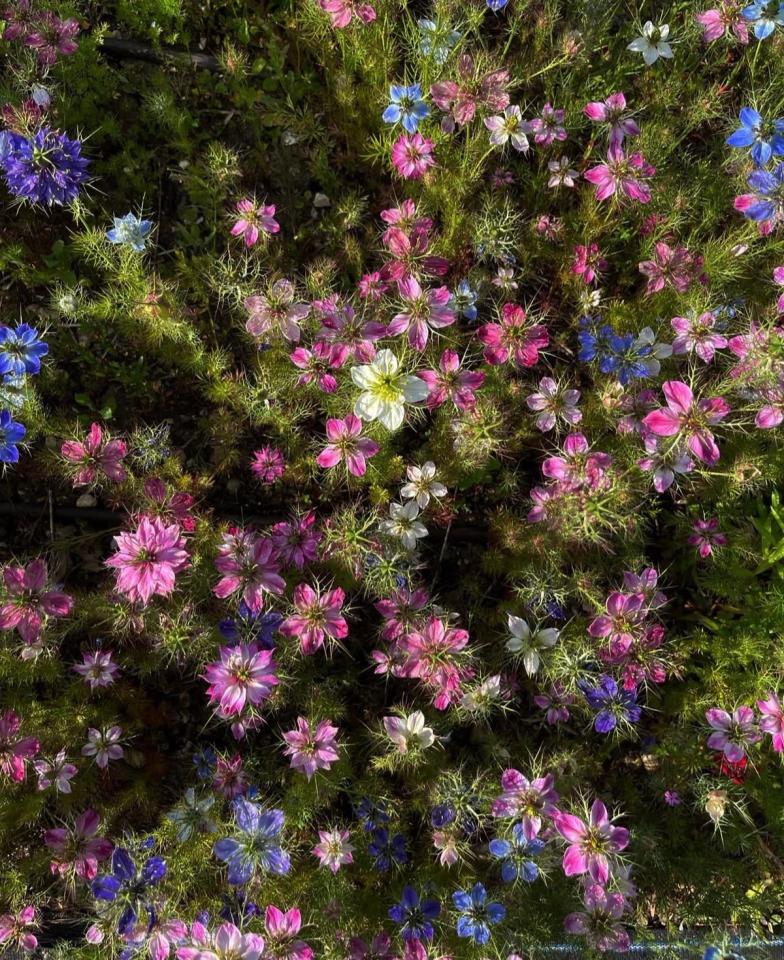 Nigella 'Persian Jewels' offers a charming mix of delicate flowers in rich blues, pinks and whites. Their distinctive dried seed pods add texture to fresh or dried arrangements. Hardy and easy to grow, they thrive in borders or containers, attracting pollinators and self-seeding for years of enjoyment.