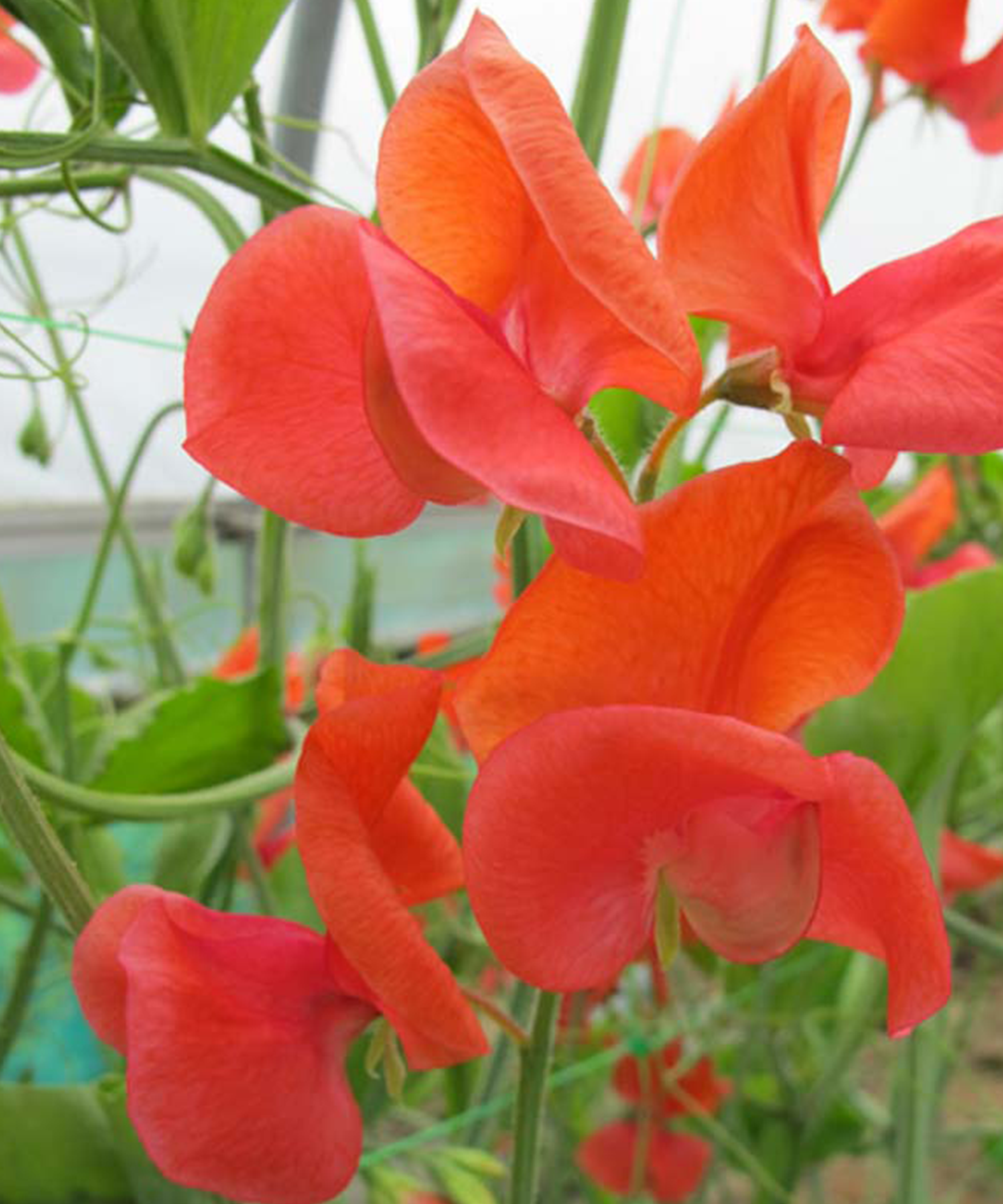 Sweet Pea 'Prince of Orange' is a classic heirloom variety known for its vivid orange blooms with a subtle pink blush and a lovely scent. Introduced in 1928, this climber thrives in containers or garden beds, attracting pollinators and adding a timeless charm to any UK garden.